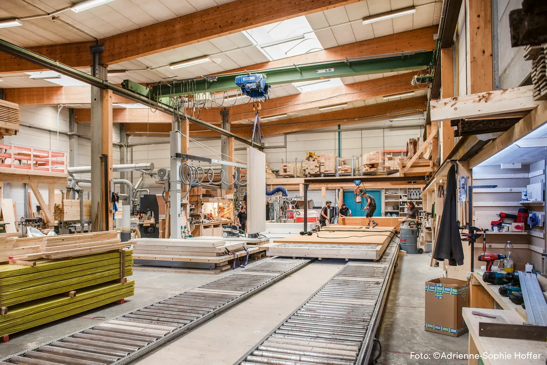Kollegen im Holzsystembau. Gemeinsam realisieren sie Projekte im Wohnungsbau, im Bildungs- und Gewerbebau sowie besondere Konstruktionen wie Brücken oder Türme.